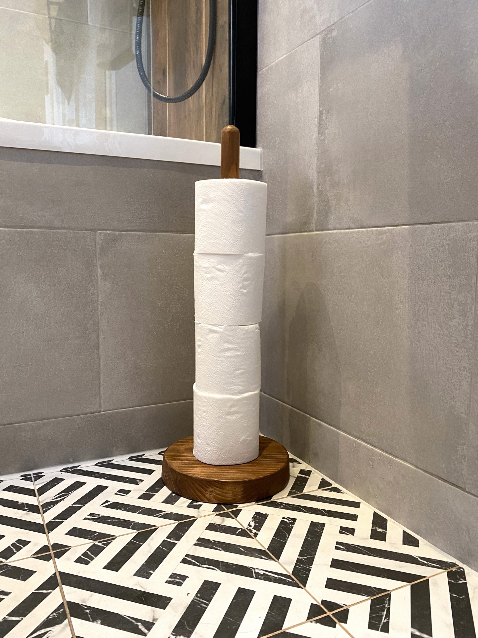 Elevate your bathroom’s style with this elegant and sustainable toilet paper holder stand.